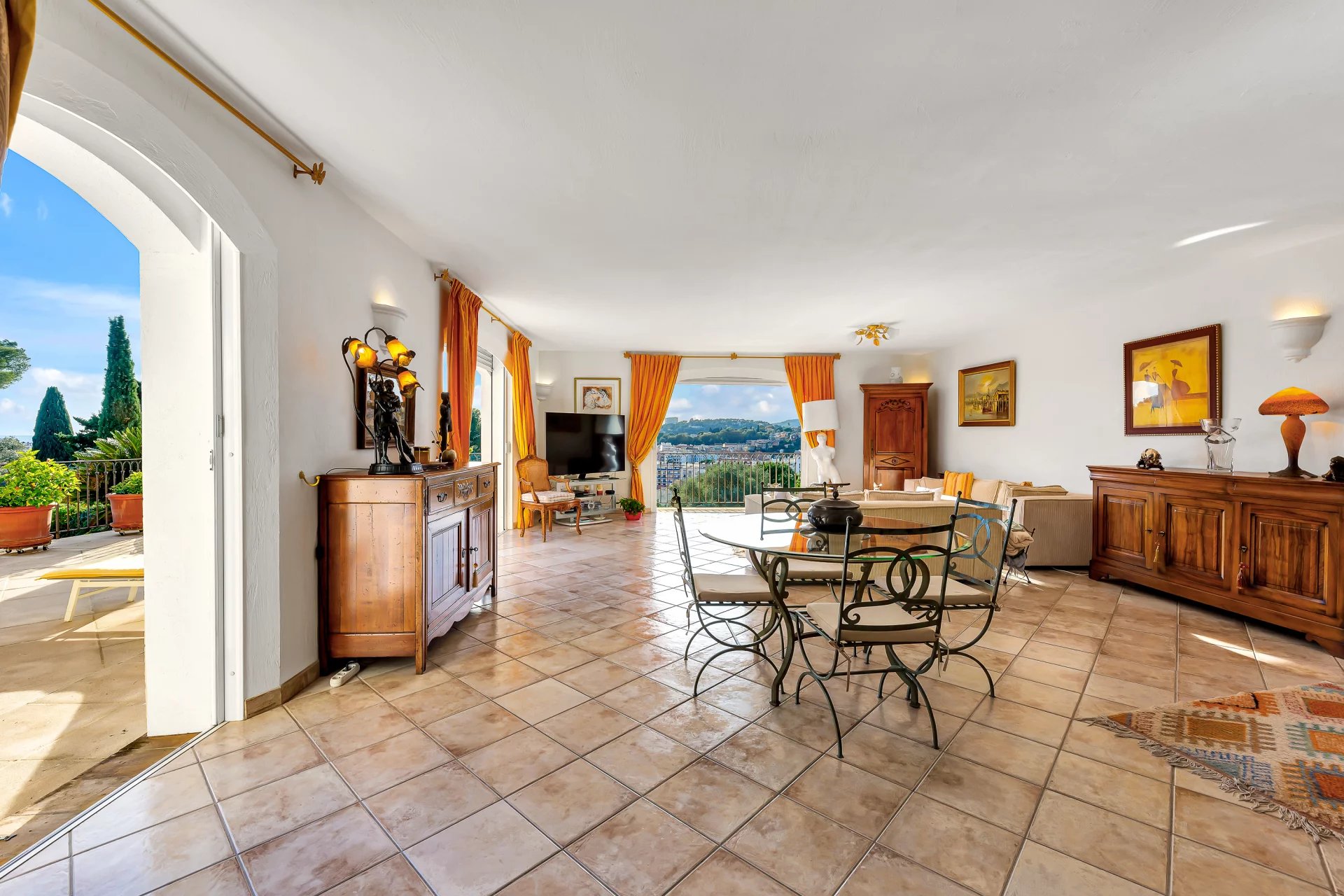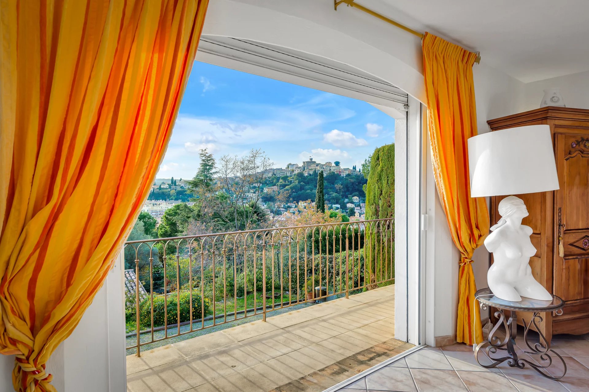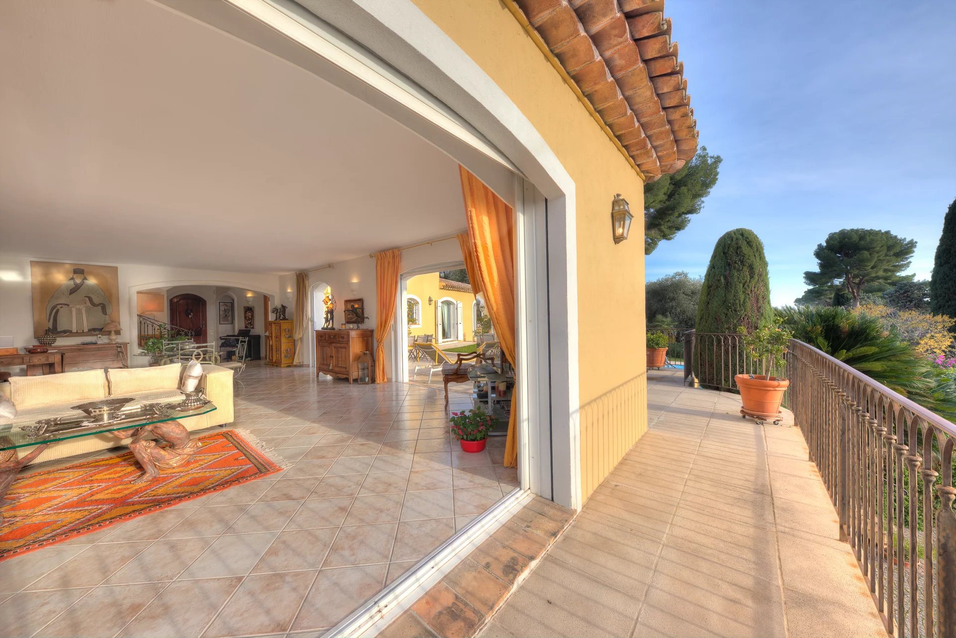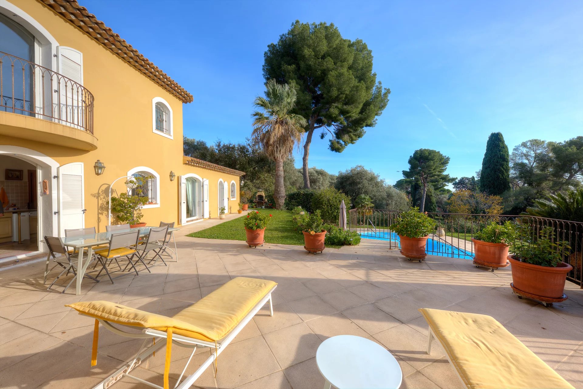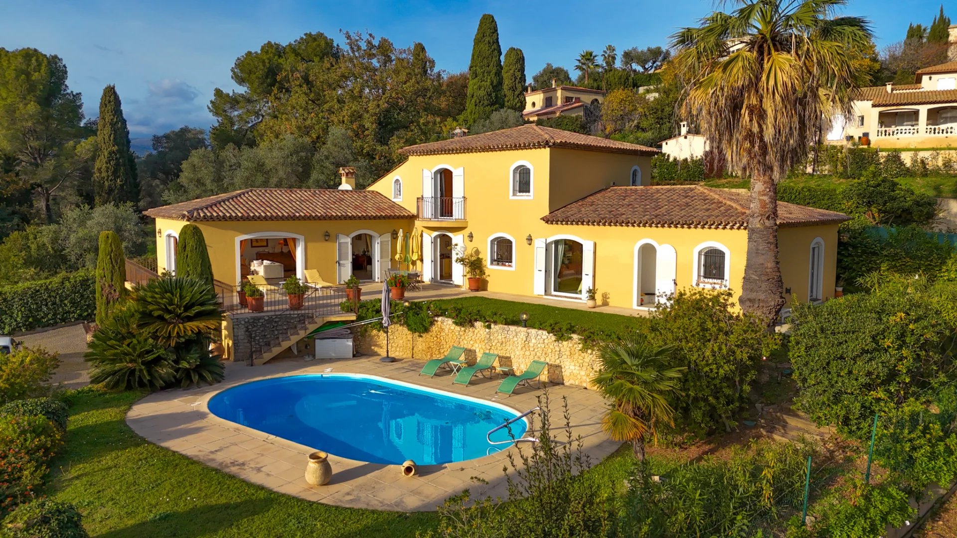 Sumptuous detached villa with swimming pool, ideally located near the Renoir Museum, in a sought-after residential area, nestled in a peaceful, green setting with no overlooked buildings, offering exceptional panoramic views of the old village, the Hauts de Cagnes castle, the sea and the hills. Optimal sunshine thanks to triple exposure.