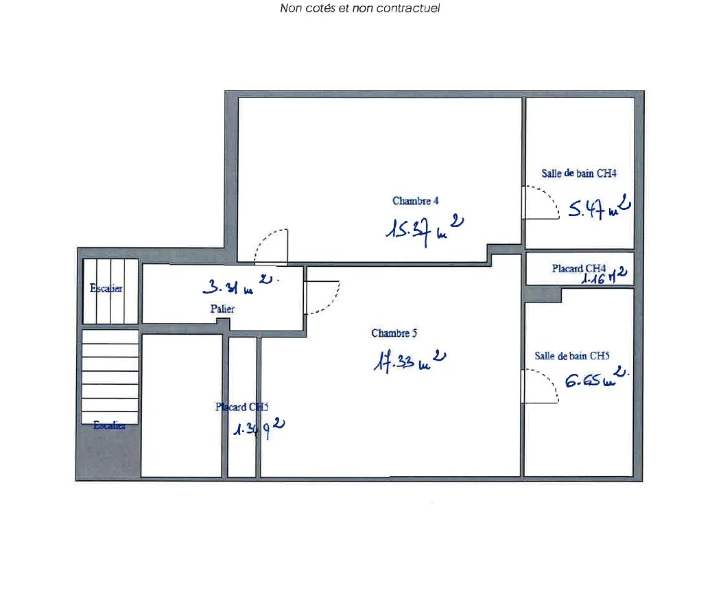 Upstairs: two large bedrooms of 15.37m² and 17.33m², each with its own bathroom.