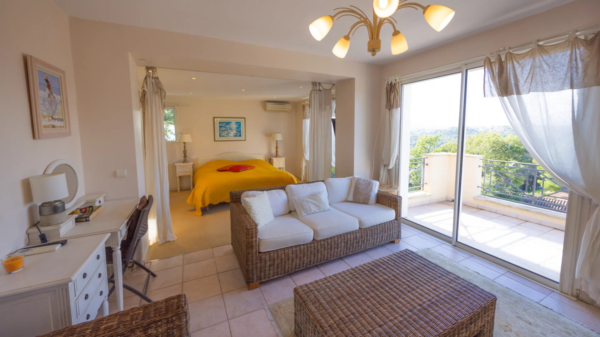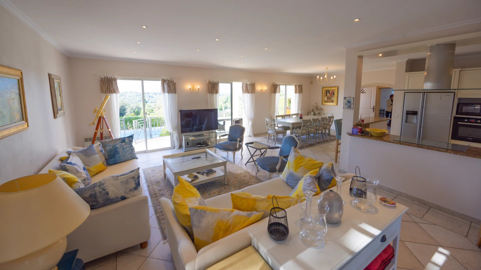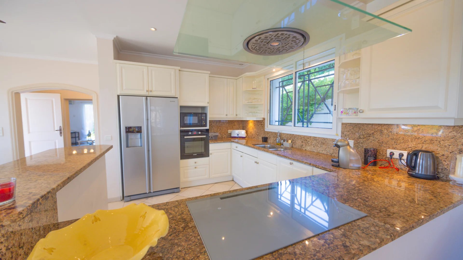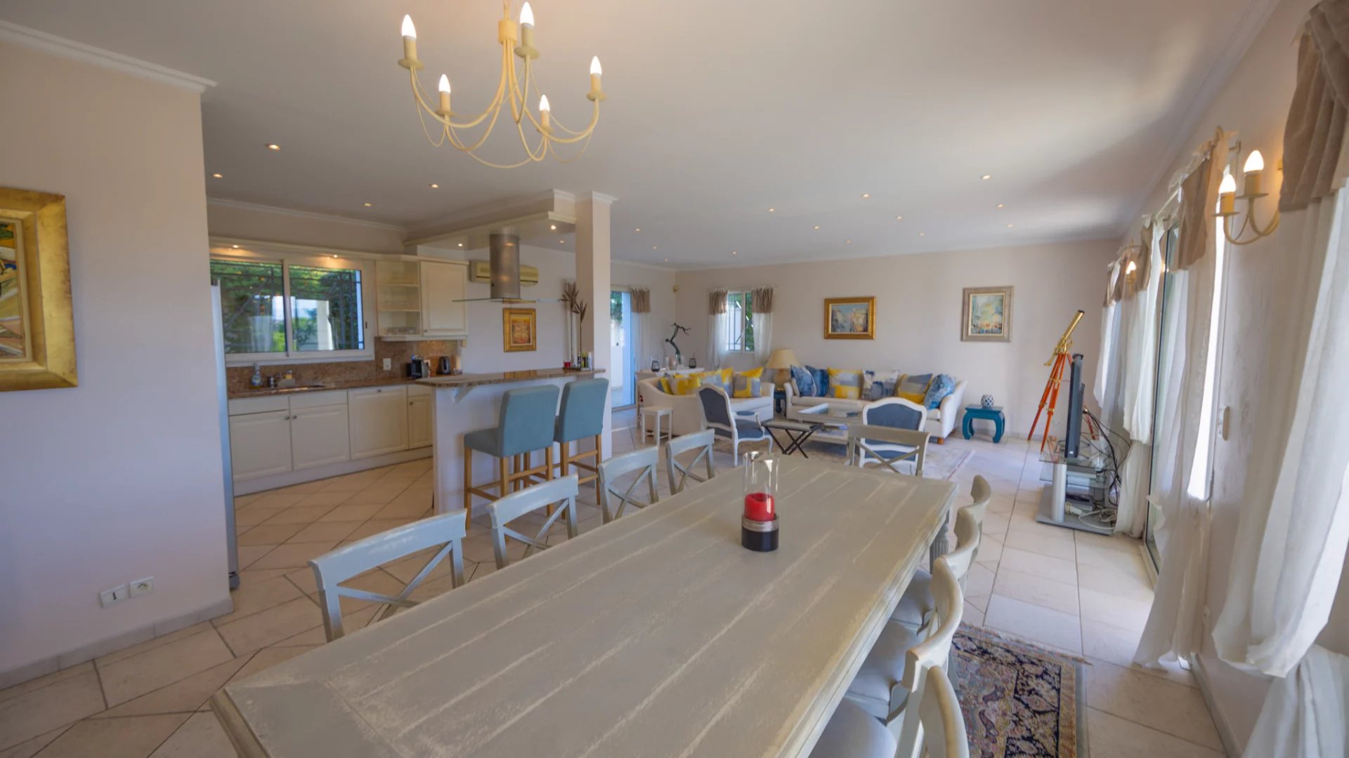 Ideally located, the Villa has a magnificent kitchen living room of 62 M2, a large bedroom and its private bathroom on the ground floor.