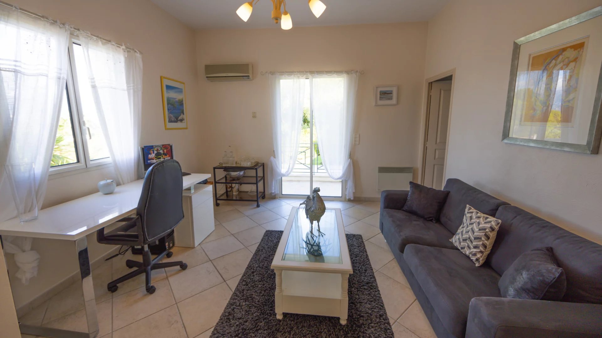 On the ground floor facing the parking lot: Laundry room, shower room and a large gym that can be converted into a games room or cinema room according to your tastes.