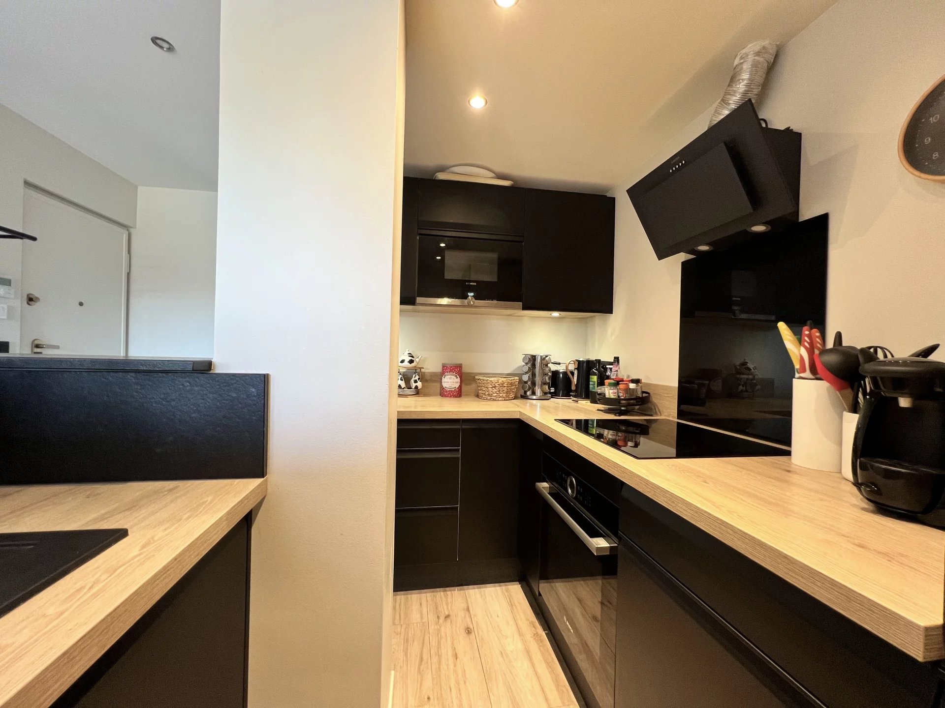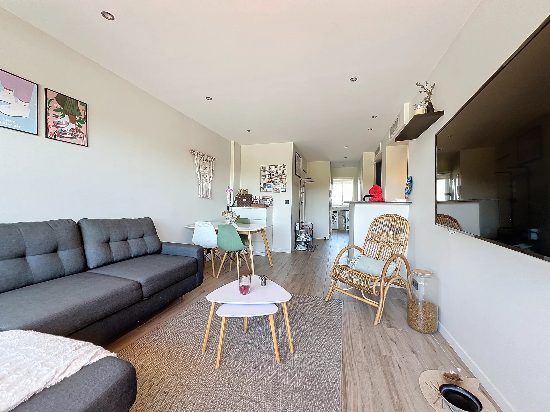 L'appartement comprend une entrée, une cuisine équipée ouverte sur une lumineuse pièce de vie donnant accès à une terrasse d'où vous pourrez apercevoir la mer, une salle de douche avec fenêtre, un WC indépendant ainsi qu'une chambre avec placards.
