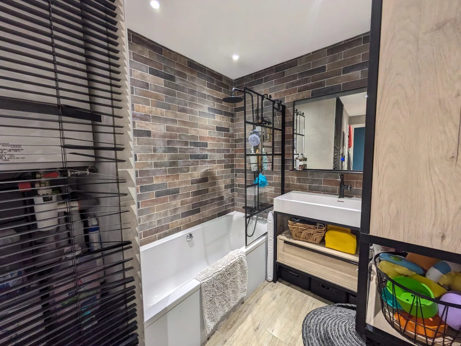 Dans un bel immeuble bien entretenu à proximité du tramway et des commodités tout en étant en retrait des axes de circulation, superbe rénovation pour cet appartement familial au charme unique.
