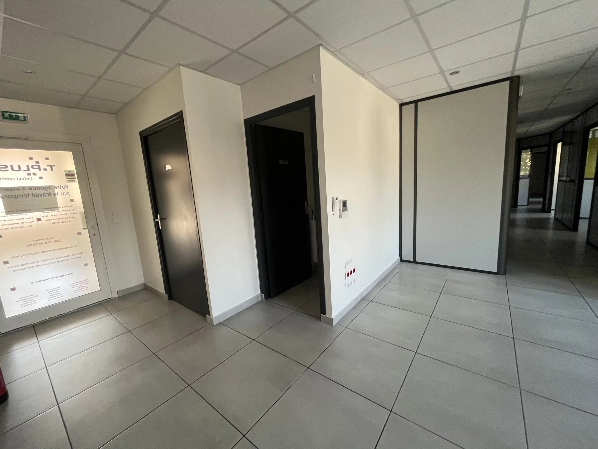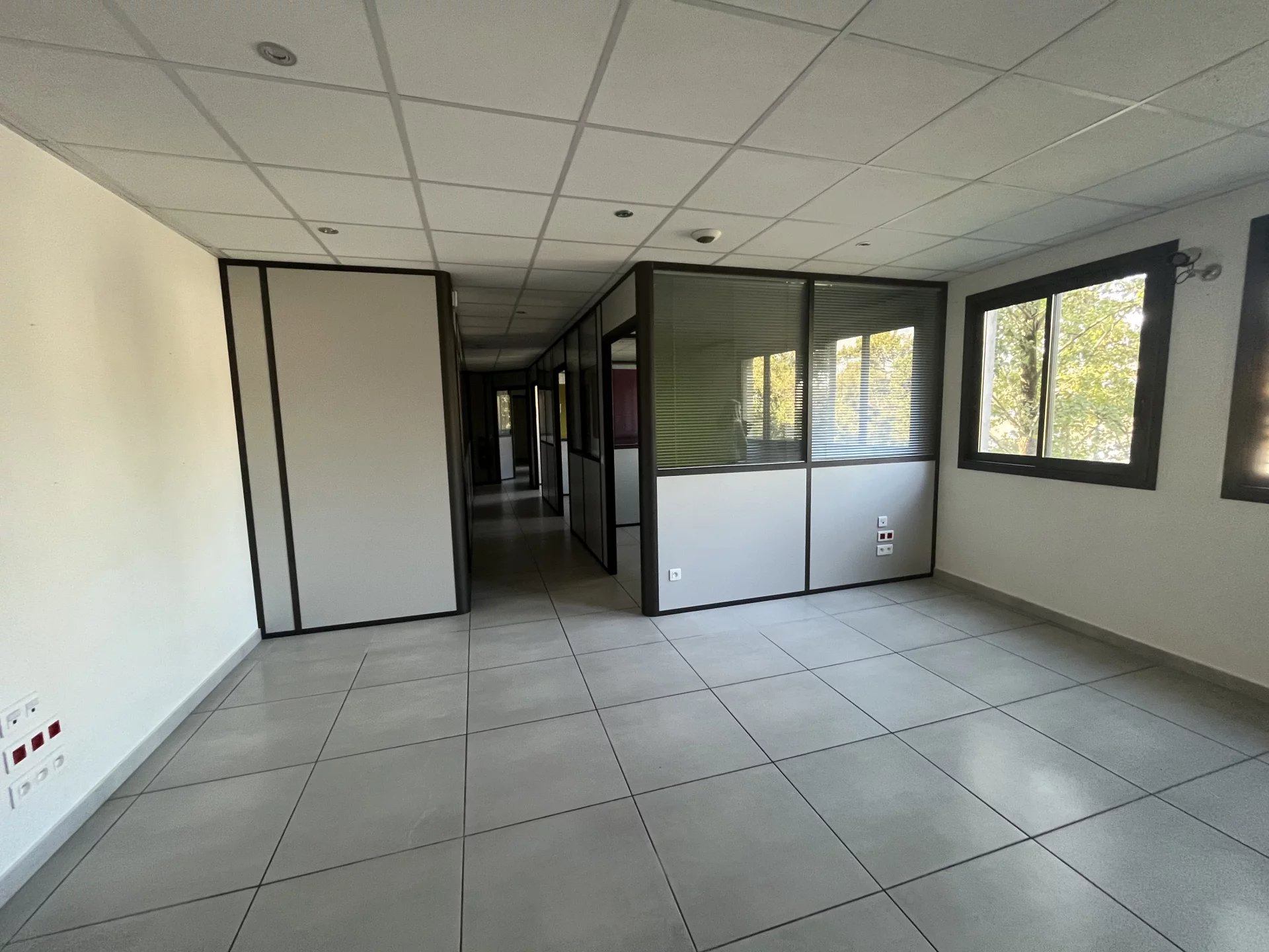 Les bureaux comprennent : un espace d'accueil, cinq bureaux indépendants, une belle salle de réunion, une cuisine, une pièce de stockage, un w.c PMR, et un w.c indépendant ainsi que trois parkings privatifs.