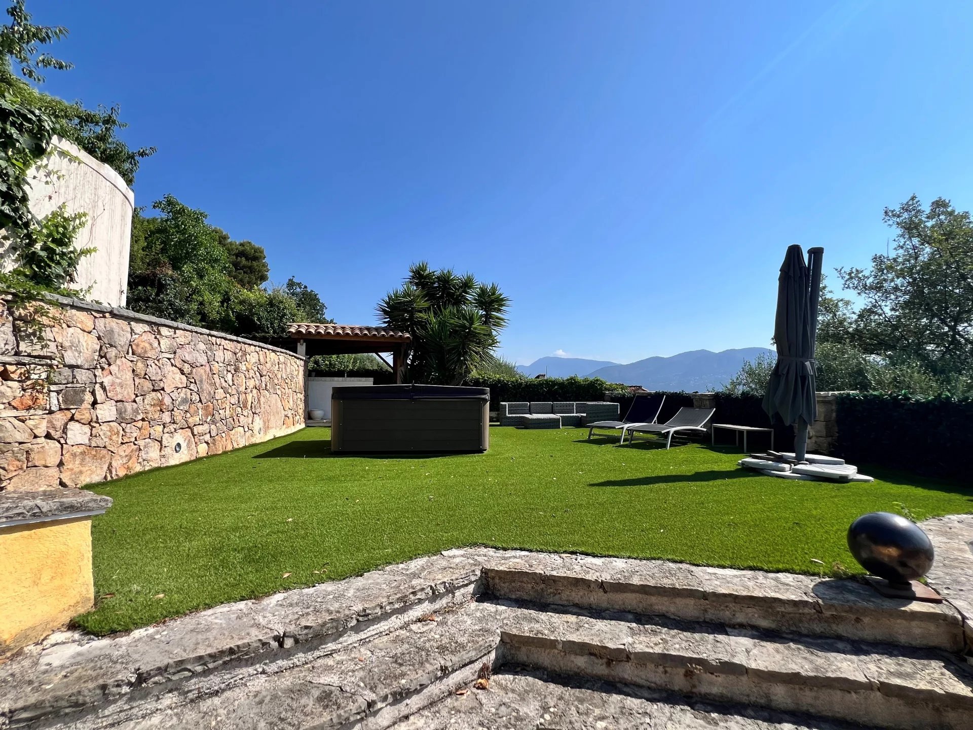 A proximité immédiate du village à pied, magnifique villa individuelle aux prestations de qualité d'environ 160 m² habitable et idéalement située en position dominante et offrant une vue imprenable sur les montagnes et le village de Gattières.