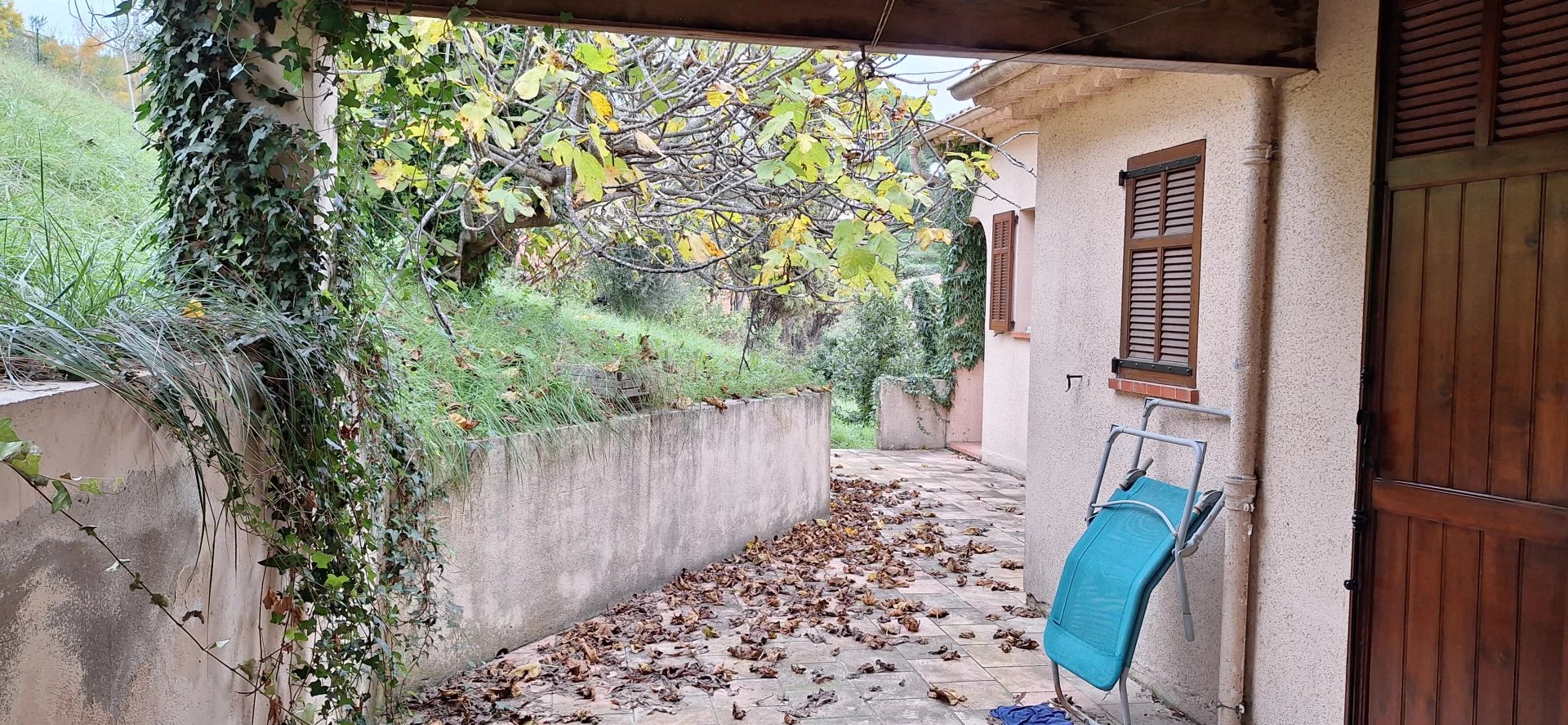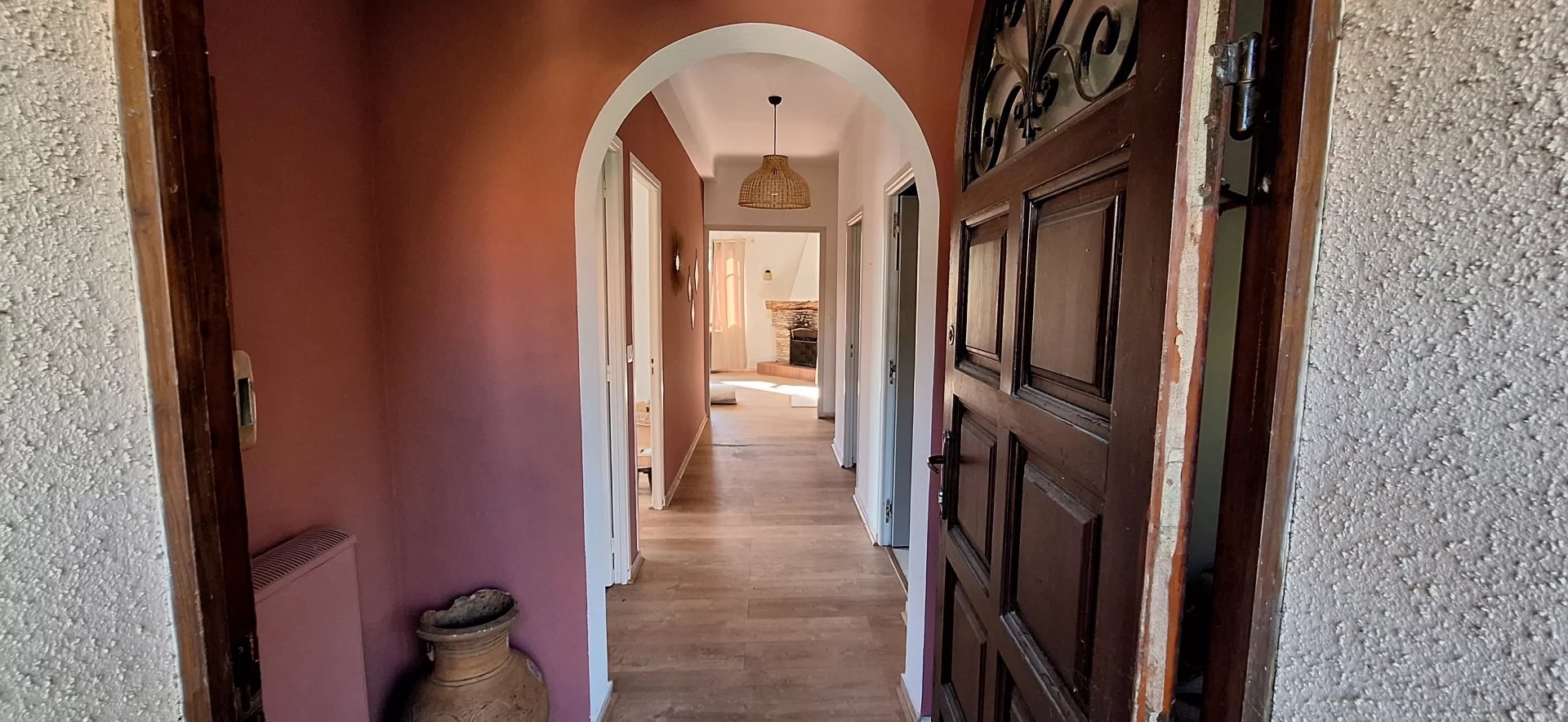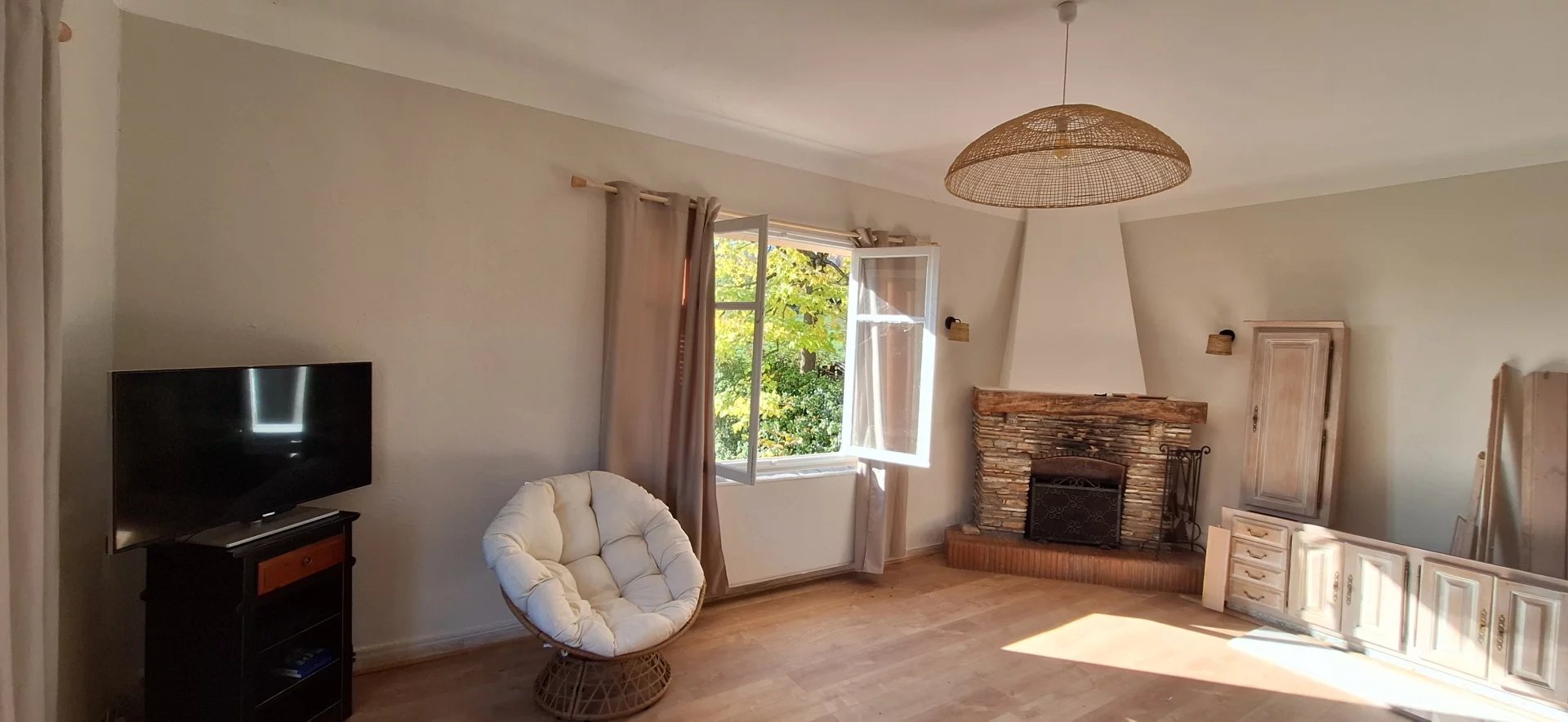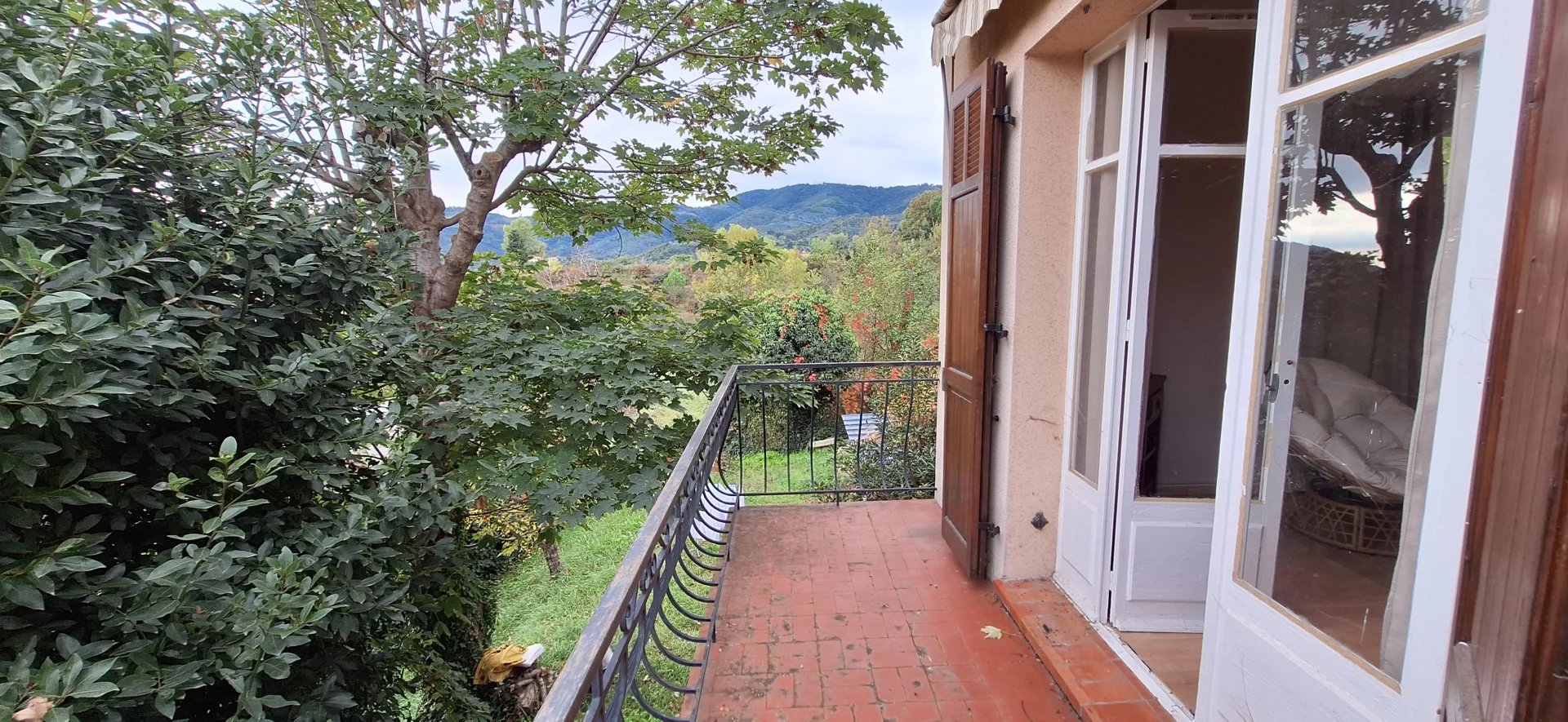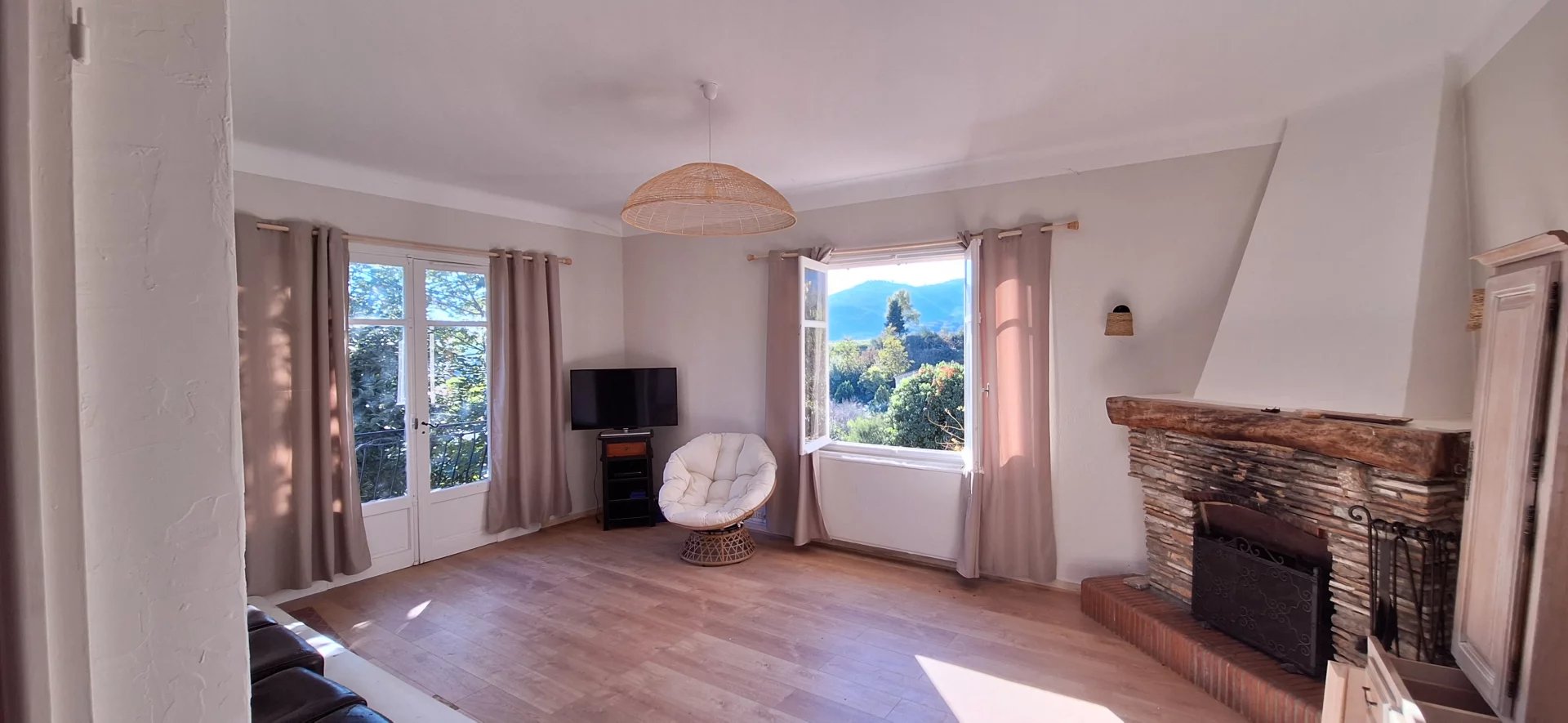 A l'étage 2 grandes chambres , un séjour avec sa jolie vue colline et sa cheminée , une cuisine indépendante à rénover donnant accès à la terrasse couverte de 13 M2.